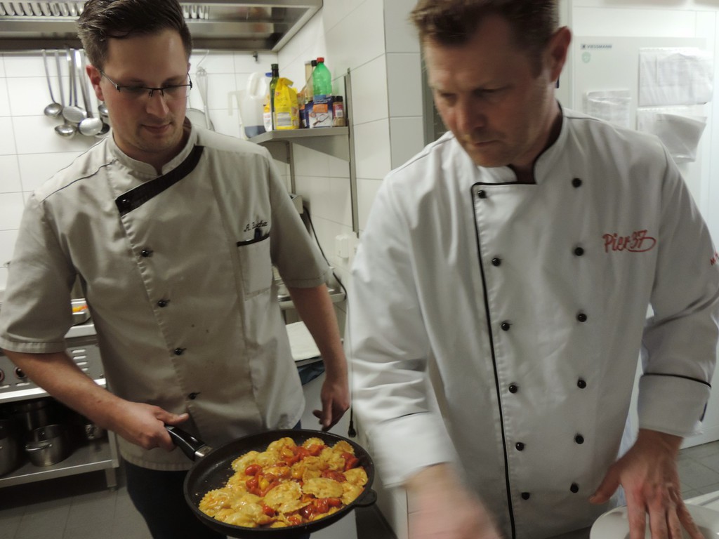 Zu Beginn Deines Kochabenteuers wirst Du von Herr Fischer begrüßt, Nach einer Einführung in die Kochkunst geht es auch schon los. Unter fachmännischer Anleitung bereitest Du gemeinsam ein 3-5